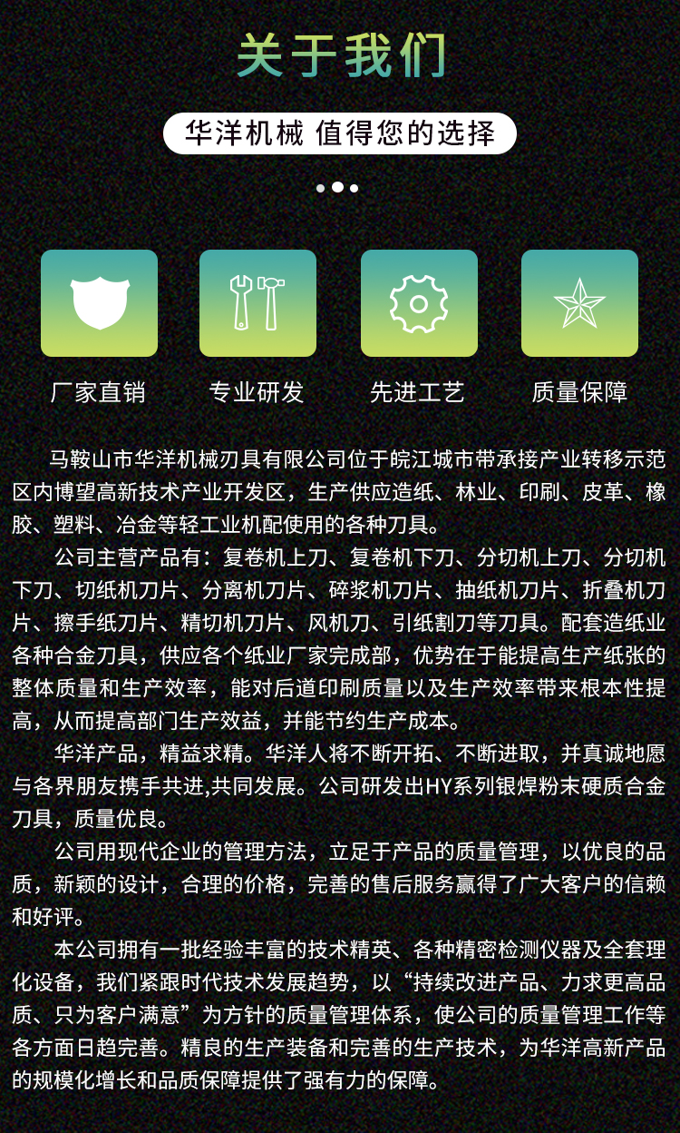 HY系列分切機(jī)刀片是用于分切機(jī)上分切材料的一種刀片,分為分切上刀和分切下刀兩部分。